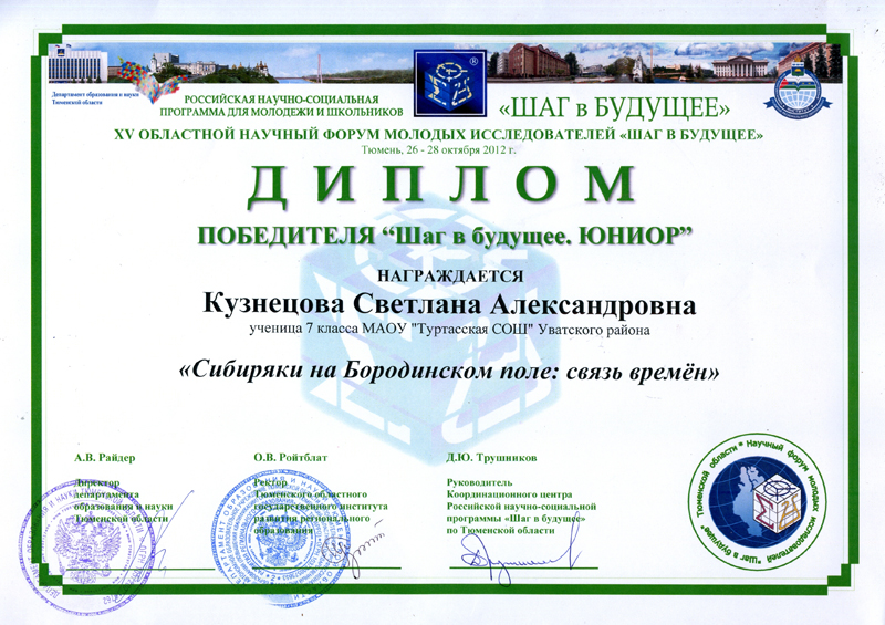 Мы выдвинули гипотезу, что на Бородинском поле сражались и прославили себя в годы Отечественной войны 1812 года и Великой Отечественной войне 1941-1945гг. сибирские воинские формирования.